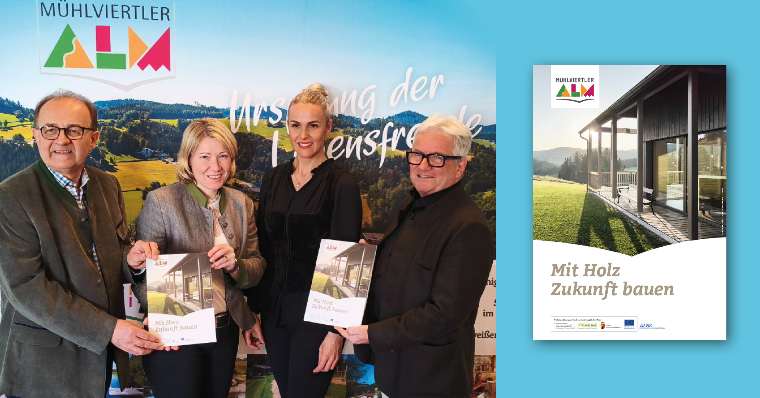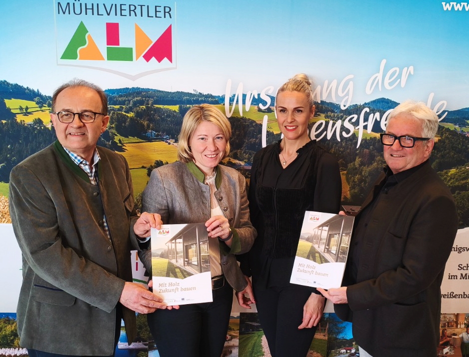 Seit Oktober des vergangenen Jahres wurde intensiv an der Umsetzung des LEADER-Projekts gearbeitet. Unter der federführenden Projektleitung von Elisabeth Schmidt entstand ein informatives und zugleich praxisnahes Werk, das jungen Baufamilien künftig im Rahmen der Bauwerbermappen als wertvolle Entscheidungsgrundlage dienen soll. Gleichzeitig versteht sich die Broschüre als bedeutendes Wissensinstrument für die Alm-Gemeinden. Sie soll dazu beitragen, die Holzbaukompetenz in den kommunalen Gremien zu stärken und mit Mythen sowie Vorurteilen rund um das Bauen mit Holz – insbesondere im Bereich öffentlicher Neubauten – aufzuräumen.
